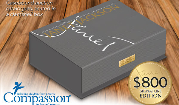 Janet Jackson’s selling an $800 boxed set for them on Julien’s Auctions. “All proceeds go to Compassion International.” It’s for Jesus, of course!