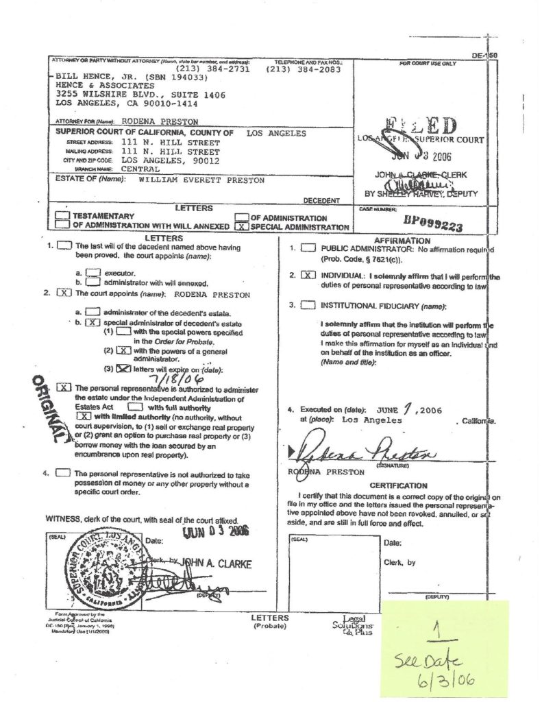 Here’s a copy of that probate claim made on June 3, 2006 — three days before he died, by Billy’s family. Will it go round in circles? So far, yes.