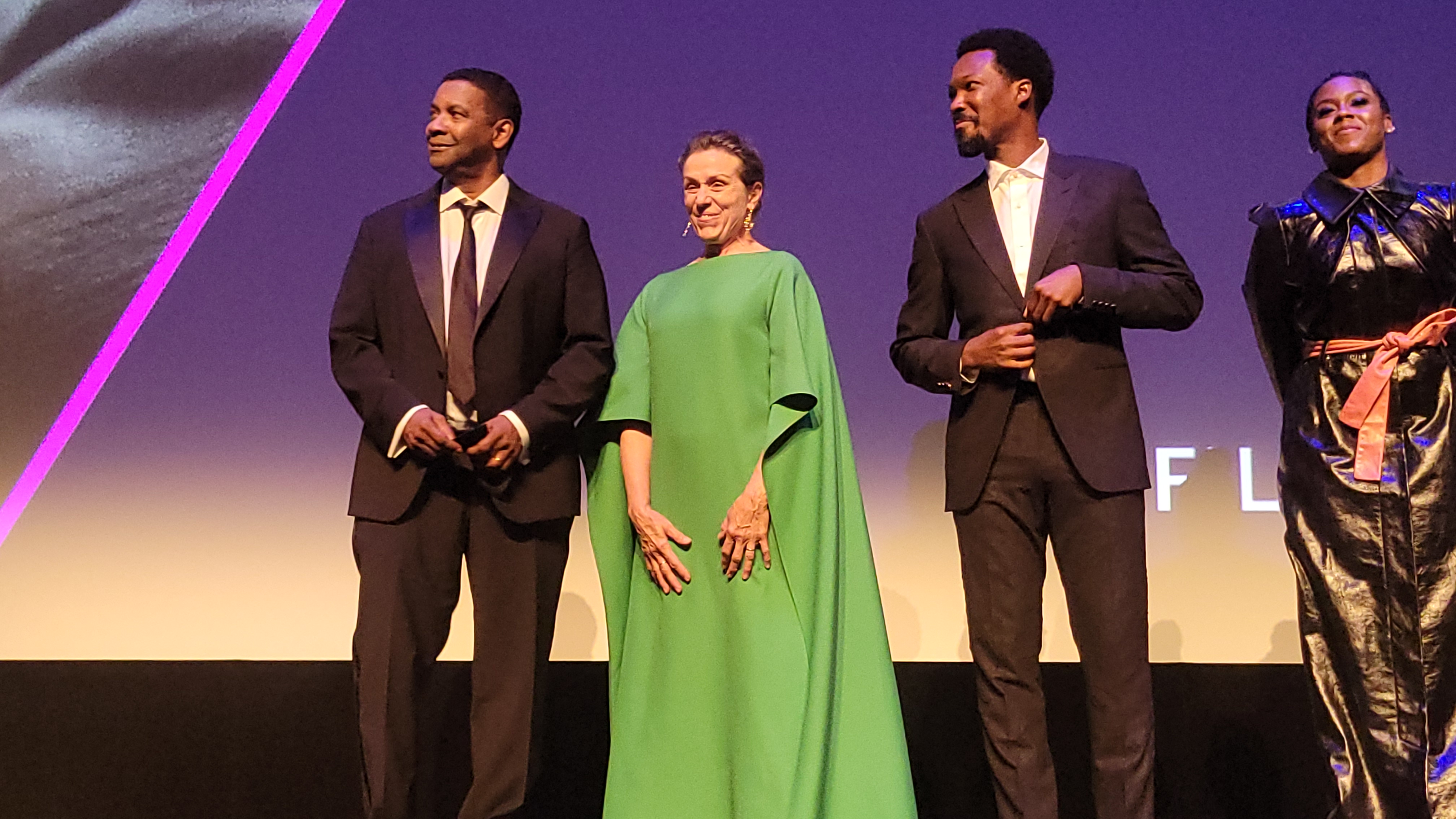 Denzel Washington, who’d been doing publicity all day. skipped the whole thing. His co-star Frances McDormand, and her husband director Joel Coen, carried on without him. McDormand, a three time Oscar winner, looked stunning and actually happy for a change. Coen seemed overwhelmed and tired. It’s not easy making a masterpiece and then talking about it for 24 hours to group after group but that’s what they did.