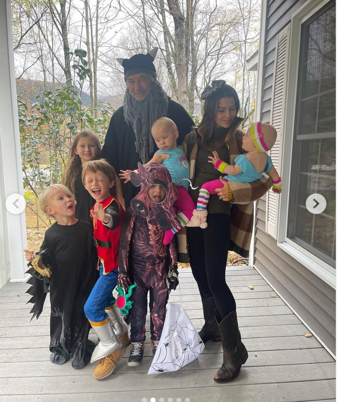 She’s posted pictures not only of her kids, but of her and Alec in full Halloween regalia, some matching costumes, from their Manchester, Vermont getaway. There’s even a video of their two youngest kids dancing in costume. So cute.