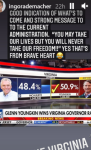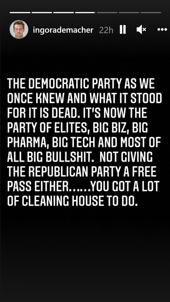 This week on Instagram Rademacher reposted the viral video a woman being removed from a real hospital over her anti-vax beliefs. He’s since removed it, but Rademacher has two posts up on his Instagram Stories that I’ve reproduced here, plus a video from vehement anti-vaxxer Robert Kennedy Jr, who has lost his mind.