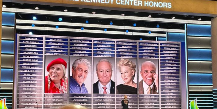 The Kennedy Center is honoring Joni Mitchell, Bette Midler, Lorne Michaels. Berry Gordy, and operatic bass-baritone Justino Díaz tonight at the DC theater. All weekend there have been ceremonies and parties for the honorees.