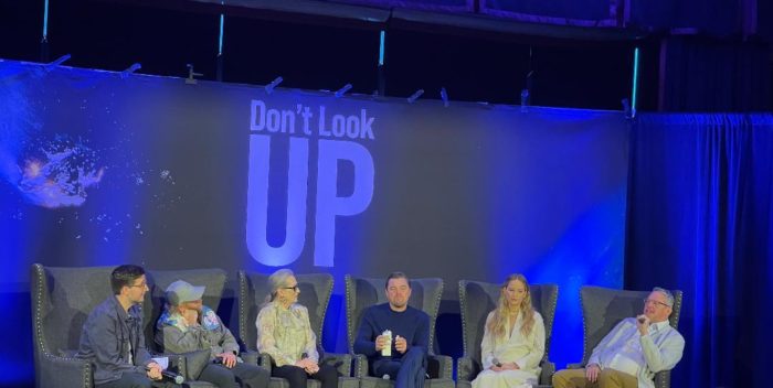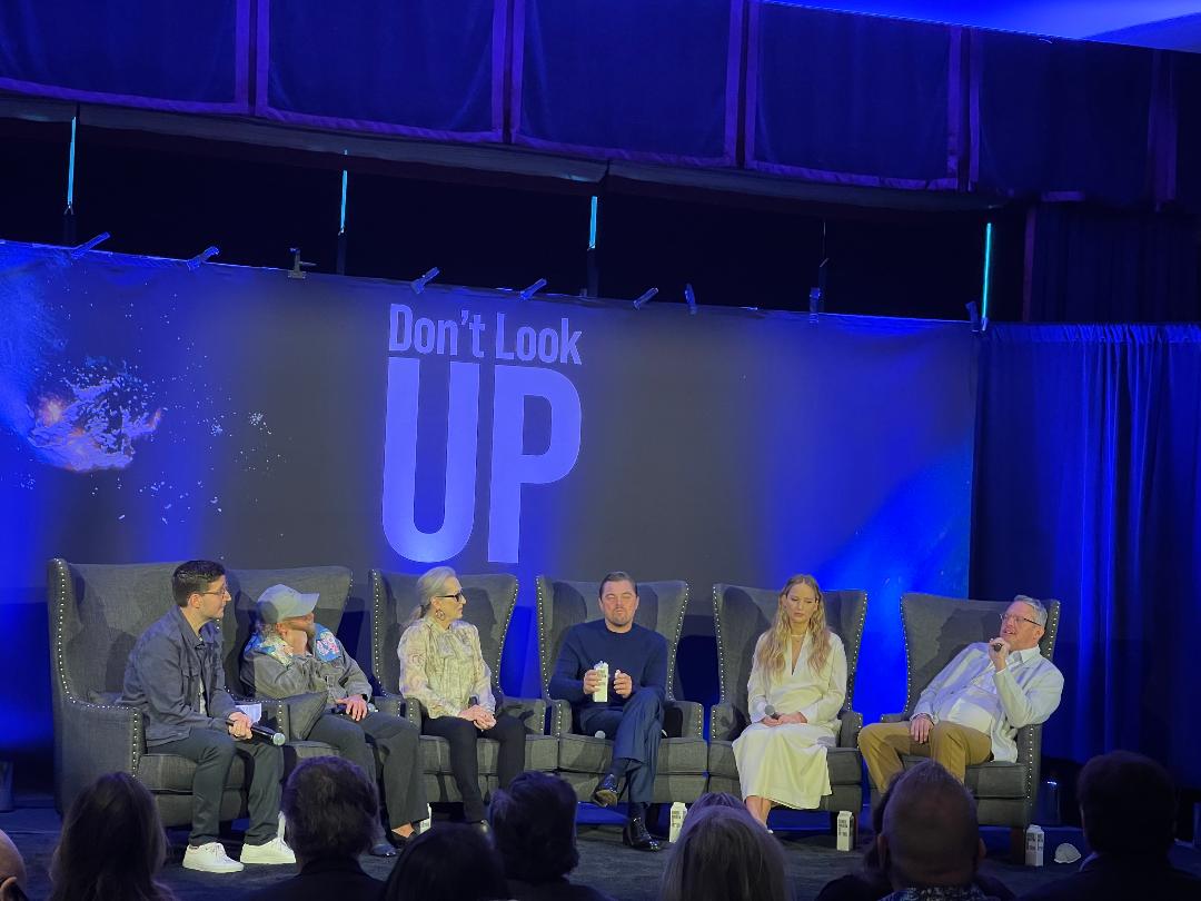 After the laughter died down in the room, Leo was asked about his climate advocacy for all these years and how it wove into his portrayal.  “It was about breaking the third wall.  The level of tension that Adam created with the comet coming in a specific time frame.  As a scientist that I play, to be sitting on this pulpit not being listened to or heard. I’ve spoken to a lot of scientists like Michael, the character I play, who feel like everything they say is marginalized, they’re not listened to. That’s one of the big reasons I wanted to do the movie.  I felt I had too.  To all those people out there who are speaking the truth.  And yet there are all these alternative facts, we don’t know how to deal with bad news. That’s the amazing hat trick Adam pulled off here with the tone of this movie.  He encapsulated all of that.  As ridiculous as some of this stuff seems.  We were shooting riots the same day they were storming the capital. As absurd as some of this seems, it is reality.”