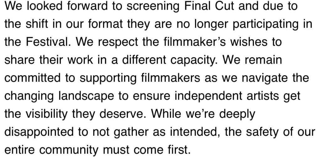 The festival says it’s because of the change. Hazanavicius only wants his film shown on big screens in theaters. The weird part of this is, “Final Cut” was included in the festival’s original virtual program. The press had already signed up for it. It’s unclear if he knew that.