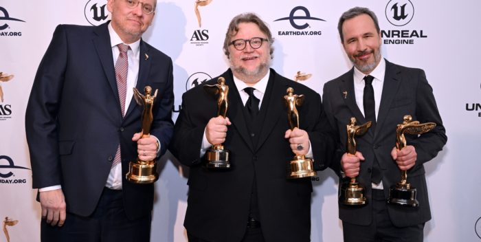 Jim Chabin, President of the AIS, jokingly called the room, ‘the geek Oscars.’ Three Oscar Nominated directors garnered awards for their films and their work. Guillermo del Toro for his “Nightmare Alley as well as receiving the inaugural Gene Kelly award. Adam McKay received the inaugural Voices for The Earth Award and Denis Villeneuve to receive the Harold Lloyd Award and the award for best live action feature.