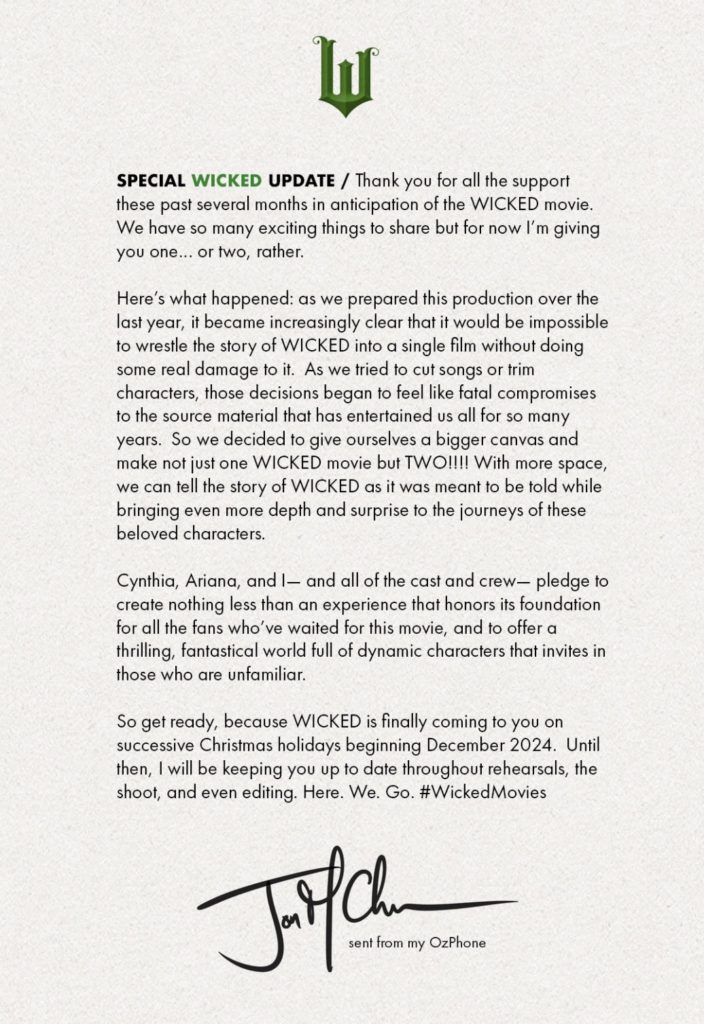 Jon M. Chu’s adaptation of the Broadway hit will premiere at Christmas 2024, and then again on Christmas 2025.