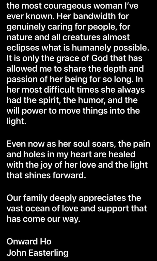 Easterling has posted a memorial to Instagram. Here it is: