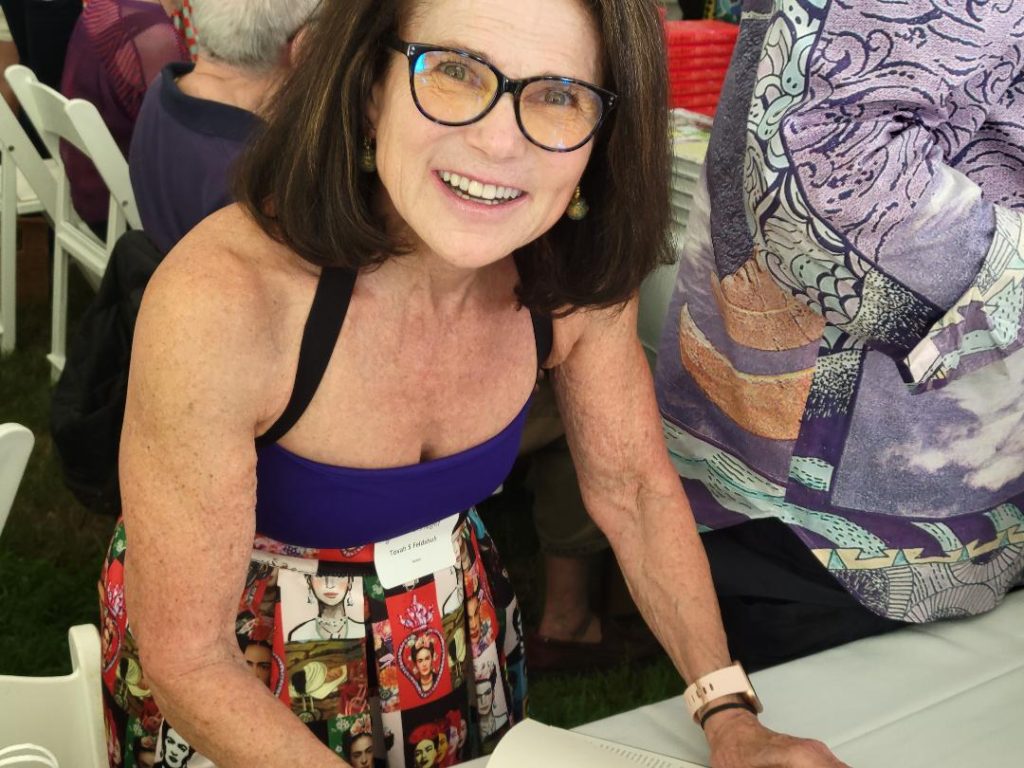 It was a crazy busy night in the Hamptons, the height of the long summer. Over at Herrick Park in East Hampton, the town library returned to full function for the annual writer’s event. Four dozen or so authors were gathered under a huge white tent, sitting at tables and signing their books. Sales of the books go directly to the Library.