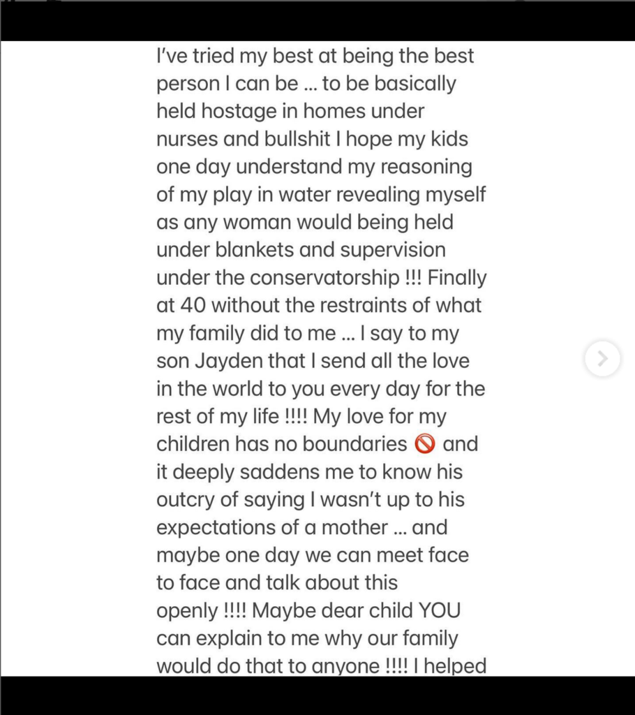 Britney Spears has returned to Instagram and posted a desperate plea to her teen sons.
