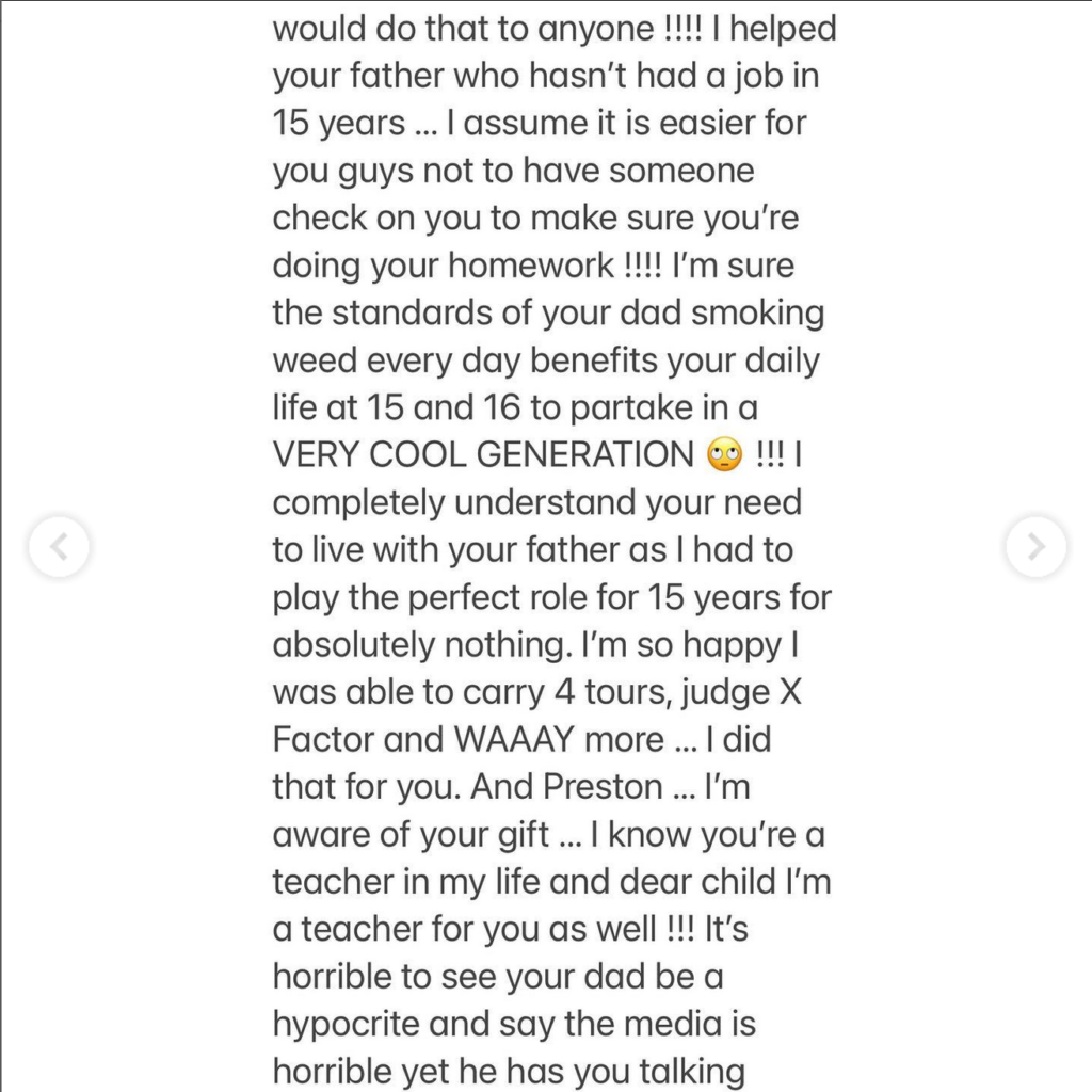 But Britney’s not getting it. This isn’t the way to win them over. She must get her lawyer to insist on family therapy sessions with the three of them in the same room. Those kids don’t want any more public humiliation. Why doesn’t she understand?