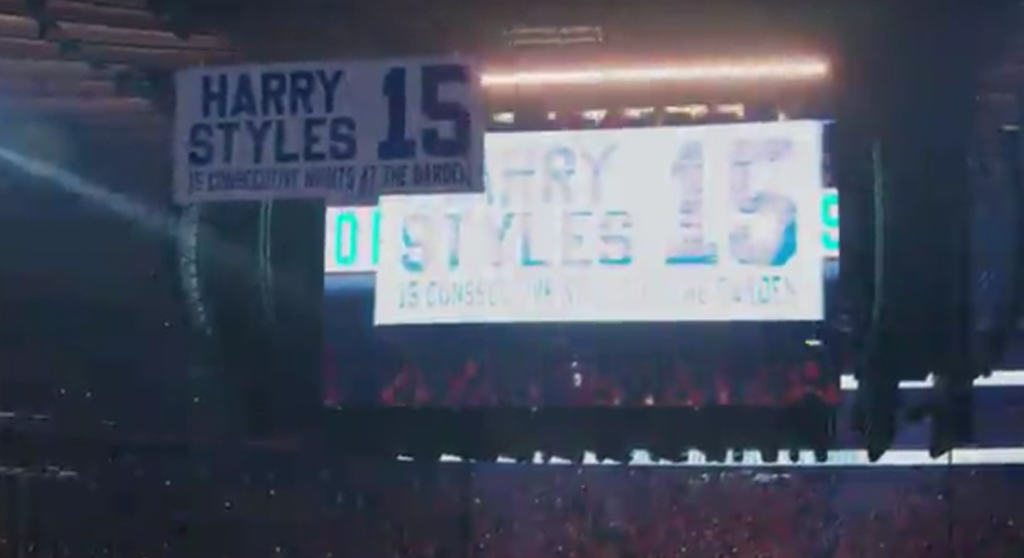 Spotted at the Garden last for his ebullient finale were a bearded Jimmy Fallon, Drew Barrymore, and Gayle King. (There was an unconfirmed Anne Hathaway sighting as well.) King took the stage, as she does, to proclaim Styles’ run a Big Deal near the end of the show, and present a banner that will hang in the Garden to mark the occasion.