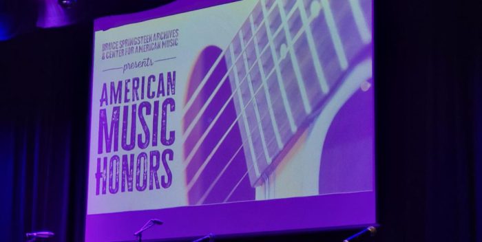 Bruce, joked Jon Stewart last night at the first annual American Music Honors at Monmouth University’s 700 seat Pollak Theater, looked healthier on video than the comic (who has nothing wrong with him).