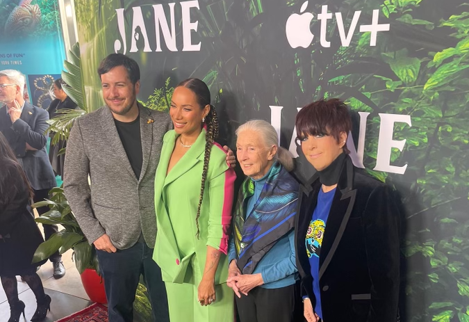 Jane Goodall, the iconic conservationist, just turned 89 years young. But that didn’t stop her coming recently to the LA premiere of Apple TV + “Jane”, a family series inspired by her mission of saving savings animals and the environment, premiered recently at the California Science Center where there is an exhibit called ‘Jane’s Endangered Animal Experience.