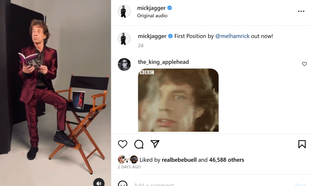 Mick promoted “First Position,” which hasn’t gotten a lot of publicity since it came out on Tuesday, on Instagram. His quote: “Pretty saucy!”