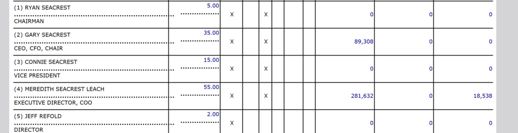 The Foundation’s purpose is set up radio broadcasting facilities in children’s hospitals. In 2021, the Ryan Seacrest Foundation made 11 donations of $10,000 each to children’s hospitals. That’s a third of what Meredith Seacrest Leach received in salary.