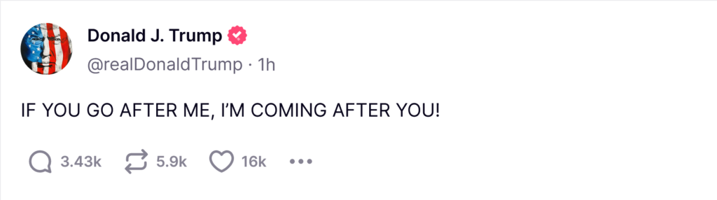 Trump issued a specific warning on his Truth Social platform at around 5pm today/ It reads