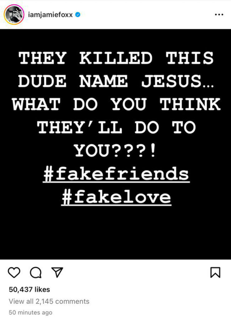 Foxx immediately deleted the post. (I understood it to mean he found a mole in his group who was selling stories to the tabloids.)