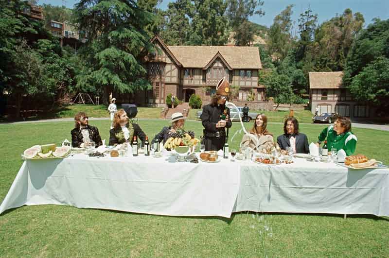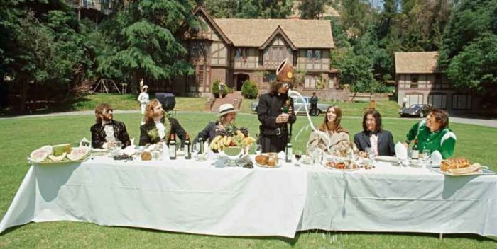 How ‘in’ was Abe? Patti Boyd Harrison took a famous photo at his house in 1972 for the cover of George Harrison’s now classic album, “Living in the Material World.” The picture included Abe with Ringo Starr, Jim Horn, Klaus Voormann, George Harrison, Nicky Hopkins, Jim Keltner. When the album was released, it was used as the inside double gatefold.