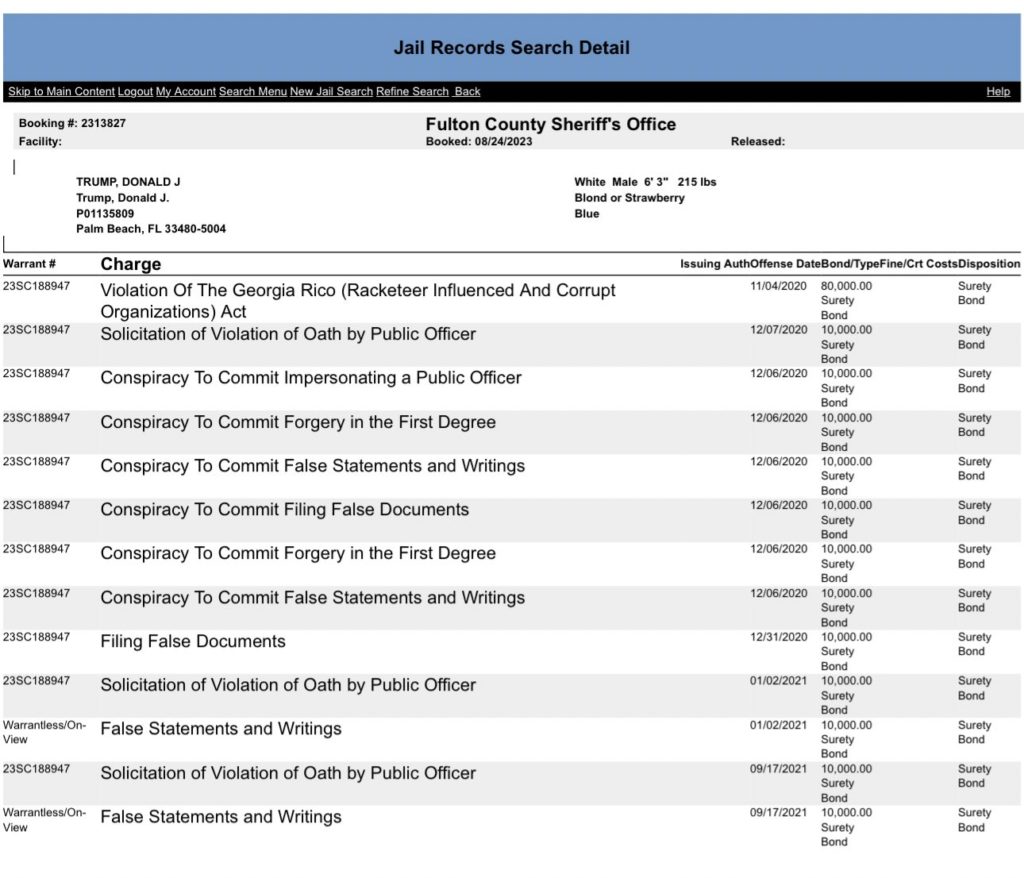Donald Trump has been arrested for the 4th time. He became the first ex US president to have a mug shot taken. On his booking record he said he weighed 215lbs, which means no one weighed him.