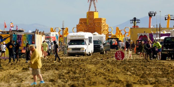 Burning Man was hit by torrential rains that caused flooding and mud that made the original Woodstock look like a spa day. The festival was cancelled but no one could leave because the roads were blocked. A mass exodus is taking place now by foot and auto.