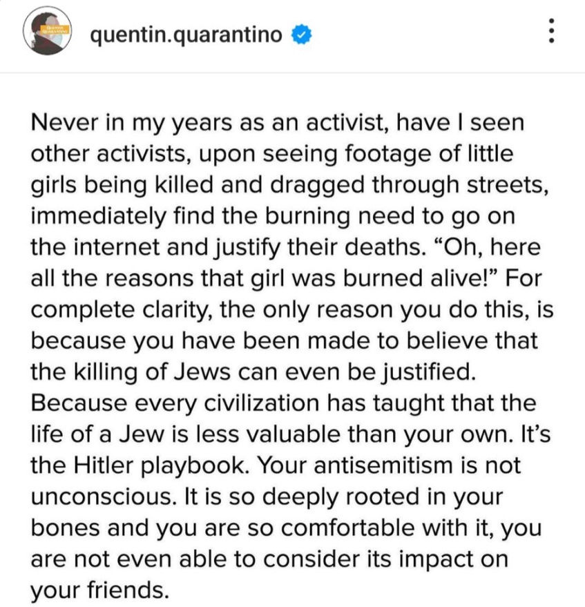 Famed director Quentin Tarantino has posted a message about Hamas and antisemitism that is powerful and succinct.