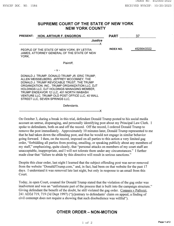 Only yesterday, Engoron fined Trump $5,000 for breaking his previous gag order. He threatened that Trump could go to jail next.