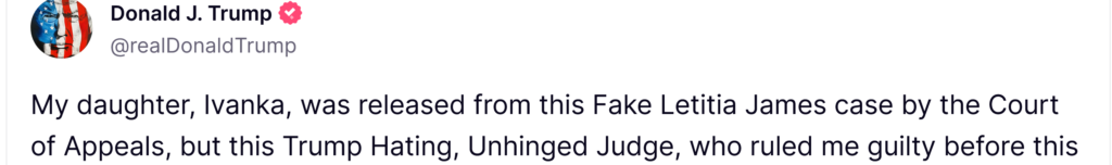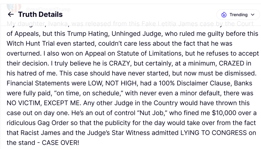 Donald Trump is on the prowl, looking to be jailed in contempt of court. In his latest post he calls Judge Arthur Engoron “crazy,” “nutjob,” and “unhinged.”