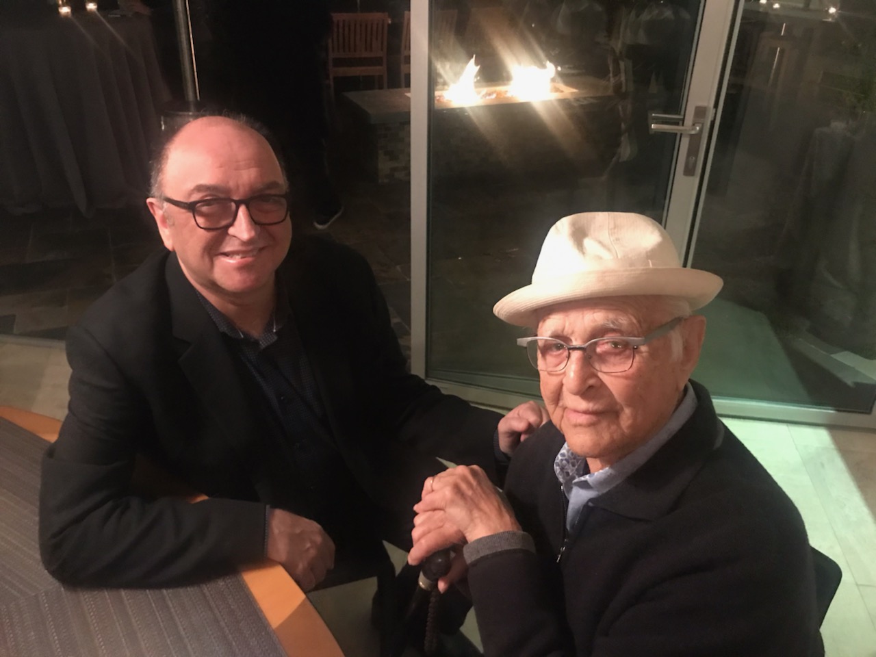 This picture was taken five or six years ago up at the Ross House in Laurel Canyon, Los Angeles. Norman and I reminisced about an early chance meeting, a couple of years earlier, when we ran into each other in front of the Shubert Theater on Broadway. It was about ten minutes before a matinee curtain, and he was waiting outside for a guest. I was concerned that a 93 year old man was by himself. He laughed heartily. He certainly wasn’t 93 in his head!