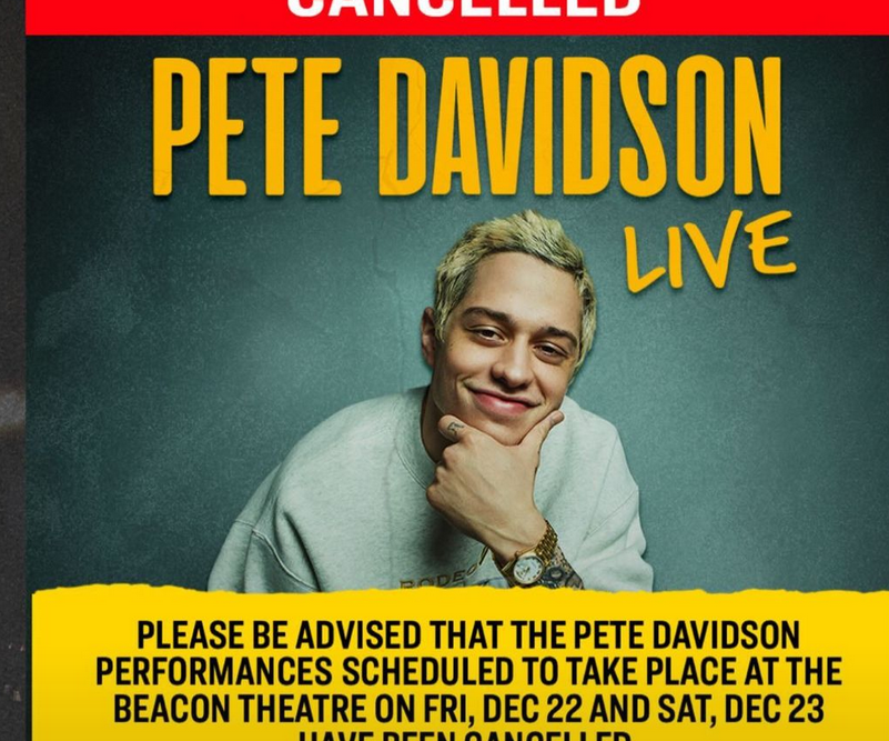“Please be advised that the Pete Davidson performances scheduled to take place at the Beacon Theatre on Fri, Dec 22 and Sat, Dec 23 have been canceled,” the email said. Refunds are automatic.