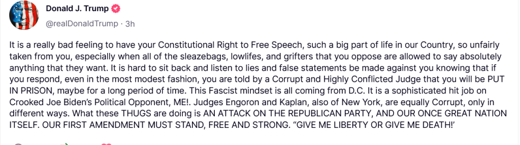 Om social media this morning, Trump called the judges in all of his trials “thugs” and labeled them “fascists.”