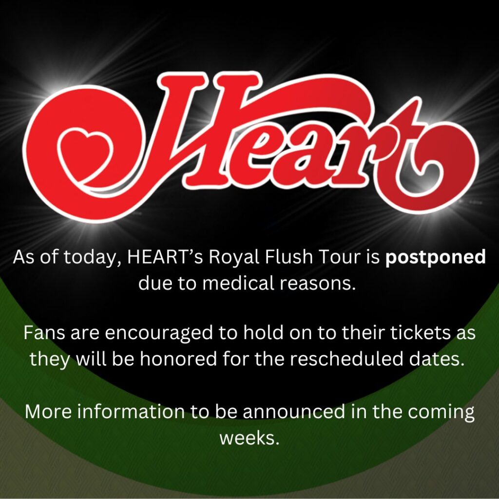 UPDATE Now Heart, the classic rock band, has postponed shows because of illness. Ann Wilson announced that she’s been diagnosed with cancer and is undergoing chemotherapy.