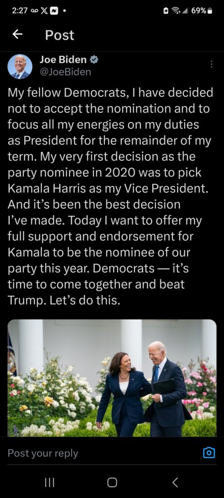 After a great presidency, Joe Biden will not run for a second term. He’s endorsed Kamala Harris to take his place.