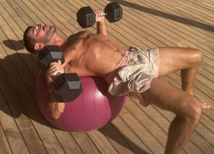 Now he’s posted a photo of himself in tip top shape, pumping iron.
