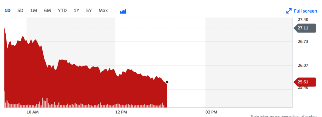 Today, Truth Media is down another 5%, to $25.55 at 1:15pm. That’s almost 6% down from yesterday as the rest of the markets are up.