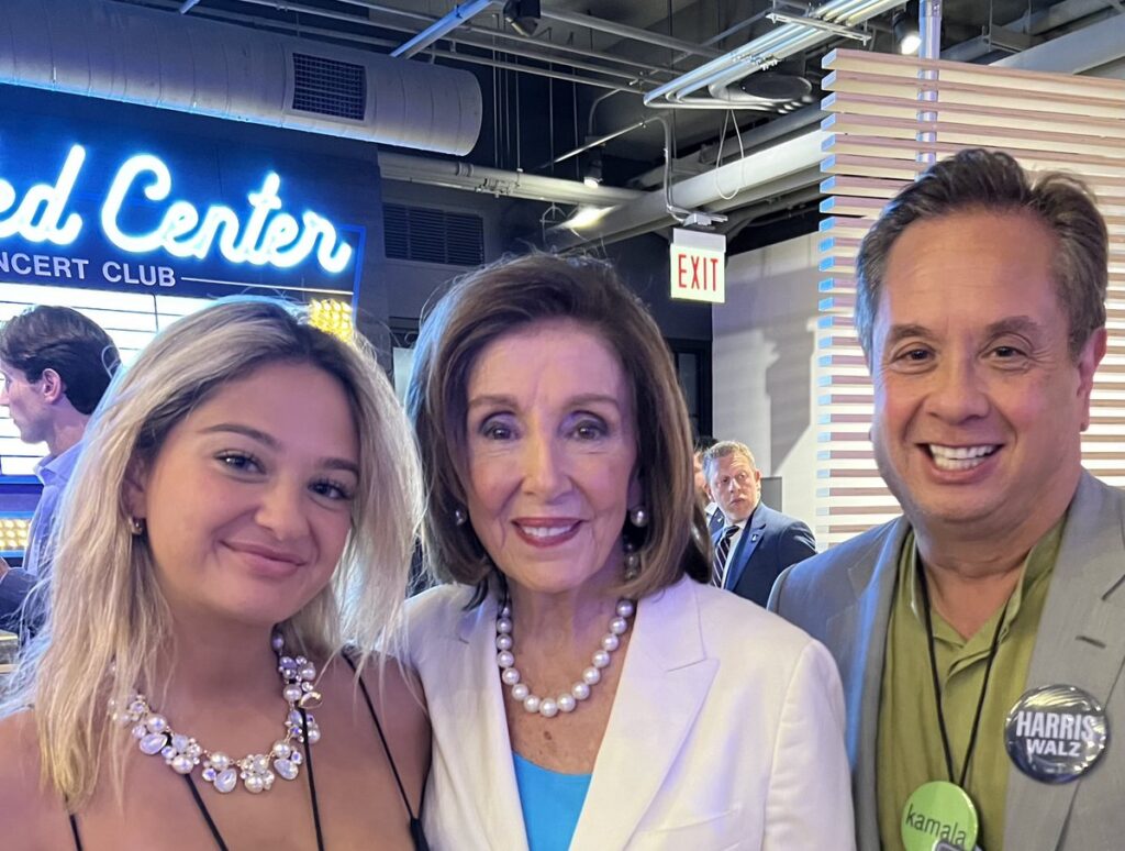 George Conway has posted a happy, smiling picture of himself, daughter Claudia, and Nancy Pelosi.