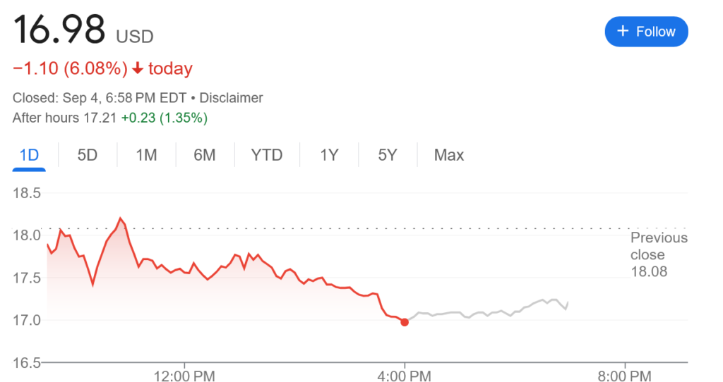 Trump Media stock fell to $16.98 today, the latest in a nosedive downward.