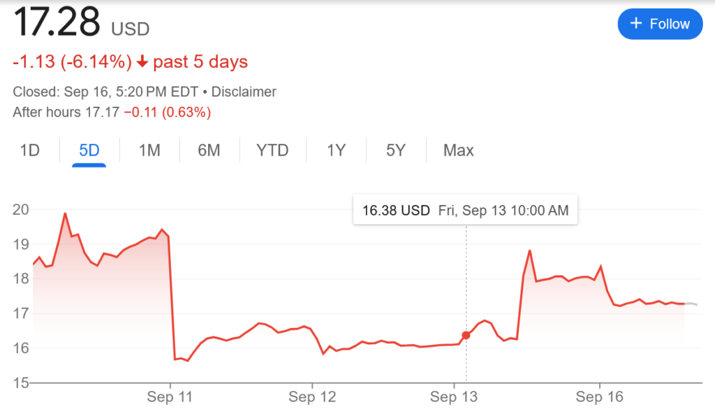 You’d think all this excitement would have driven Trump followers to show their support by investing in his stock. But Trump Media fell today by 3.84%. The price is now $17.28. On Friday, the closing price was $17.97 after wild afternoon in which Trump tried to pump the price artificially. His efforts worked for a half hour before people caught on.