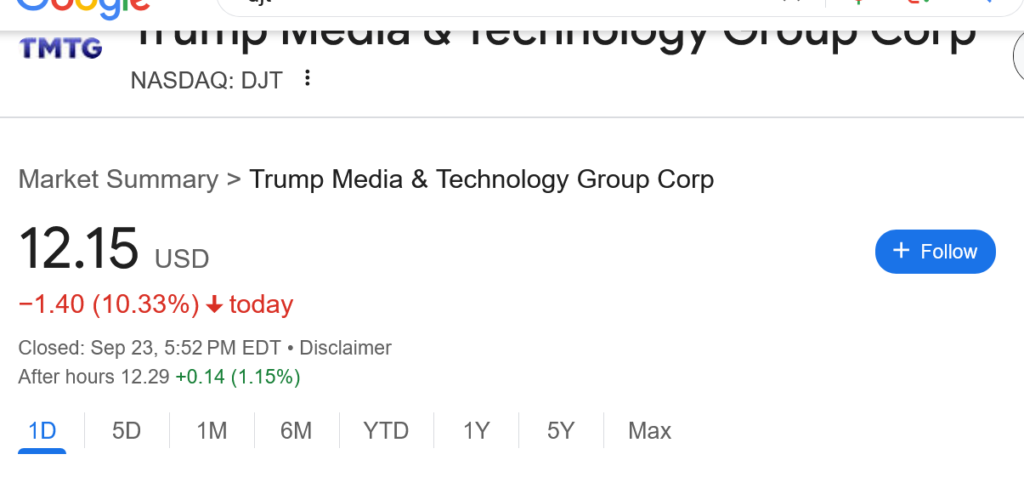 The stock price for Trump Media is just $12.15. It’s dropped more than 80% since last winter. There’s nothing left of it.