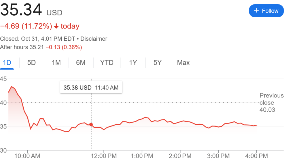 Trump Media’s stock price fell suddenly at 10am, maybe when his investors realized that the Puerto Rico scandal — a comedian calling the US territory a “floating island of garbage” at his hate filled rally on Sunday — did him in.