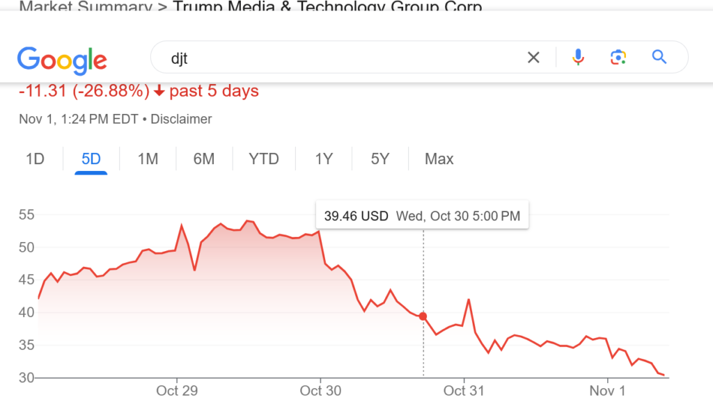 Trump Media is down to $30.30 after he suggested killing former congresswoman Liz Cheney.