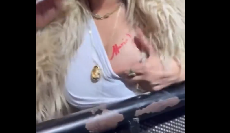 When Mariah spotted Rihanna she came down off the stage and signed Rihanna’s chest in red lipstick.