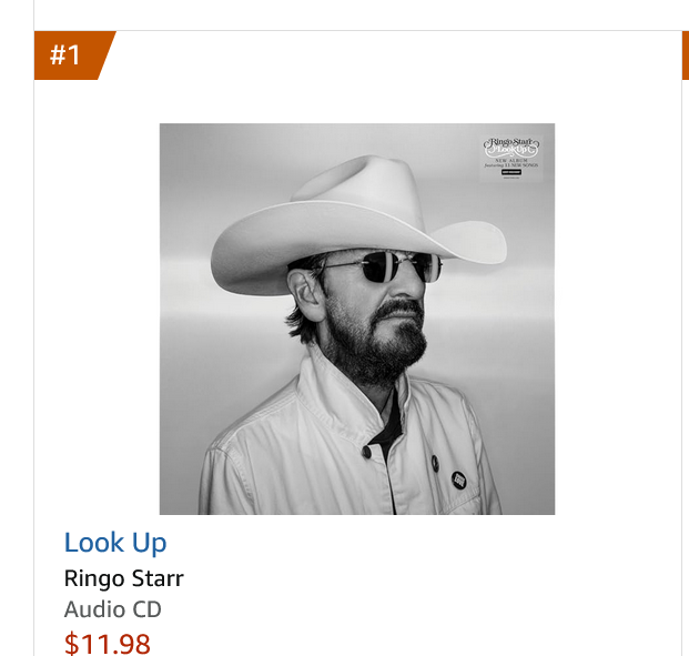 Now Ringo, the beloved drummer of The Beatles, has a number 1 album on Amazon.com today. “Look Up” is also number 4 on iTunes.