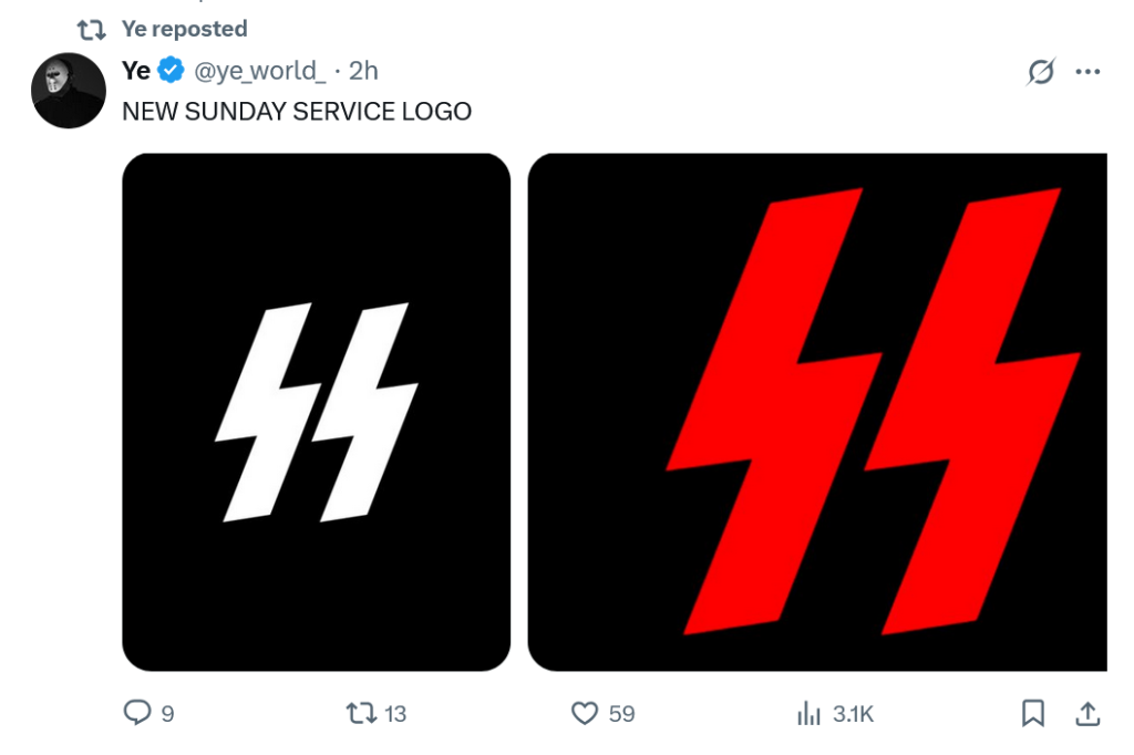 Kanye West — a despicable example of evil fighting humanity — posted a “Nazi Song” on Instagram tonight.