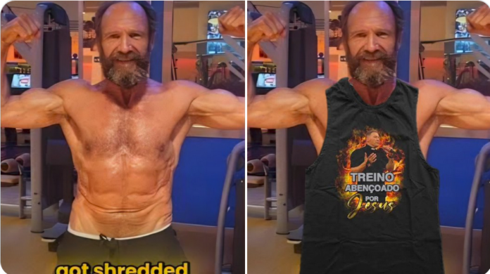 Fiennes has posted picture of what he looked like under the robes in “Conclave.”
