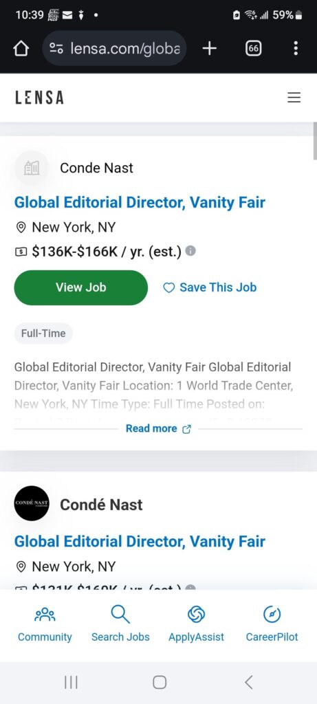 Publisher Conde Nast is offering the job of Global Editor for a max salary of $166,000.