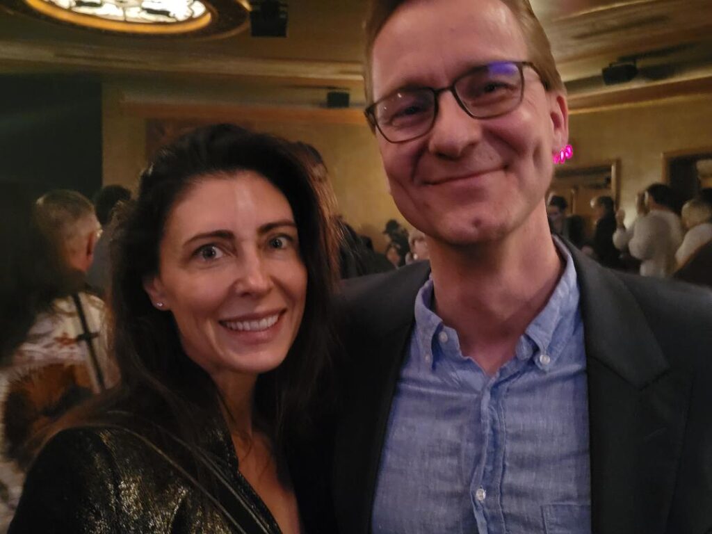 They turned out to be Wall Street M&A guy Pim Kraaijeveld and his wife, vocal coach Aimée Steele. Dutch by birth, Pim — which is not short for Personal Investment Management — loves Broadway. Makes sense since Aimée was the vocal coach for Glenn Close when she won the Tony for “Sunset” a few years ago. (She looks a lot like Mimi Rogers.)
