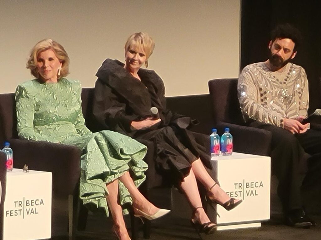 On stage: Cynthia Nixon — looking the most glamorous I’ve ever seen her, Christine Baranski (always glamorous), Carrie Coon (Beautiful and very funny), Denee Benton, Louisa Jacobson, and Morgan Spector wearing a Lanvin top Liberace would have adored.