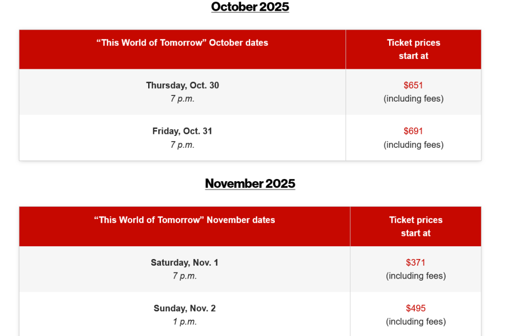 Tickets went on sale to The Shed members on July 15th, and to the public four days ago. So far, there are plenty of seats according to The Shed website. The Shed sells them for a bargain price of $399. But not one performance is sold out. In fact you can pick and choose where you’d like to sit and on what night.
