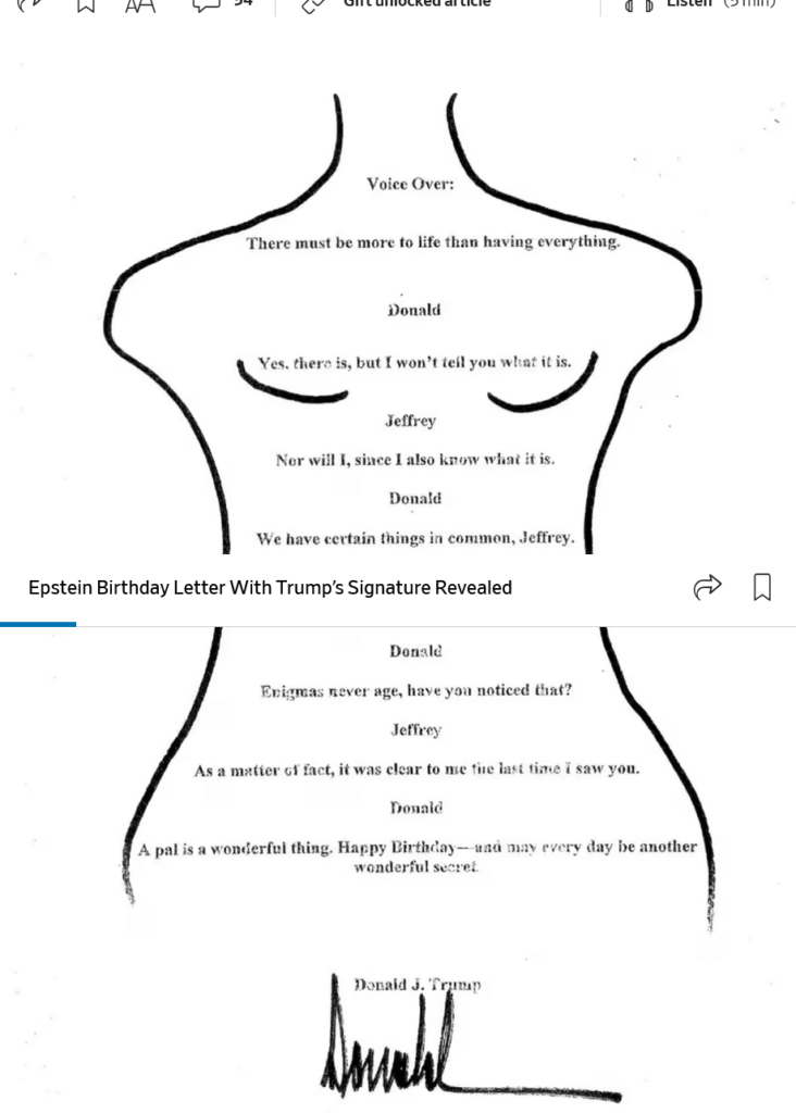 MAGA your president sent this to Jeffrey Epstein. Trump denied it existed. But here it ’tis:
