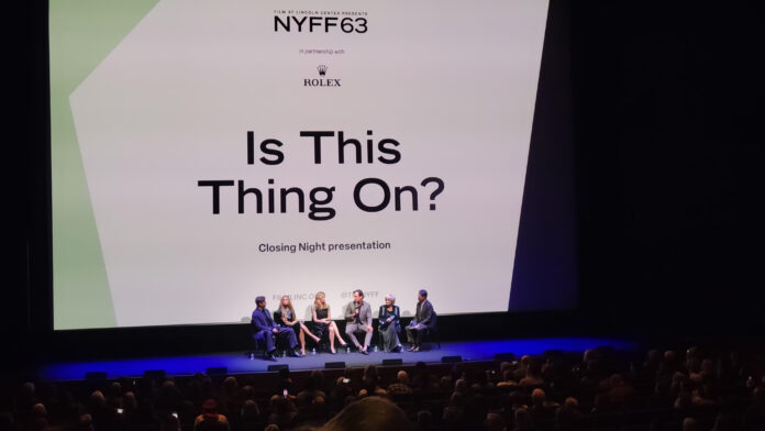 “Is This Thing On?” is a movie as much about stand up comedy as “Marty Supreme” is about ping pong. (This is not “Mrs. Maisel.”) The “thing” that might be ‘on’ is not a microphone but a marriage falling apart. The story is written by John Bishop– who something like this really happened to, Arnett, and Mark Chappell. They approach it like a John Updike or Cheever story updated with some laughs and cell phones and without any heavy drinking, just malaise.